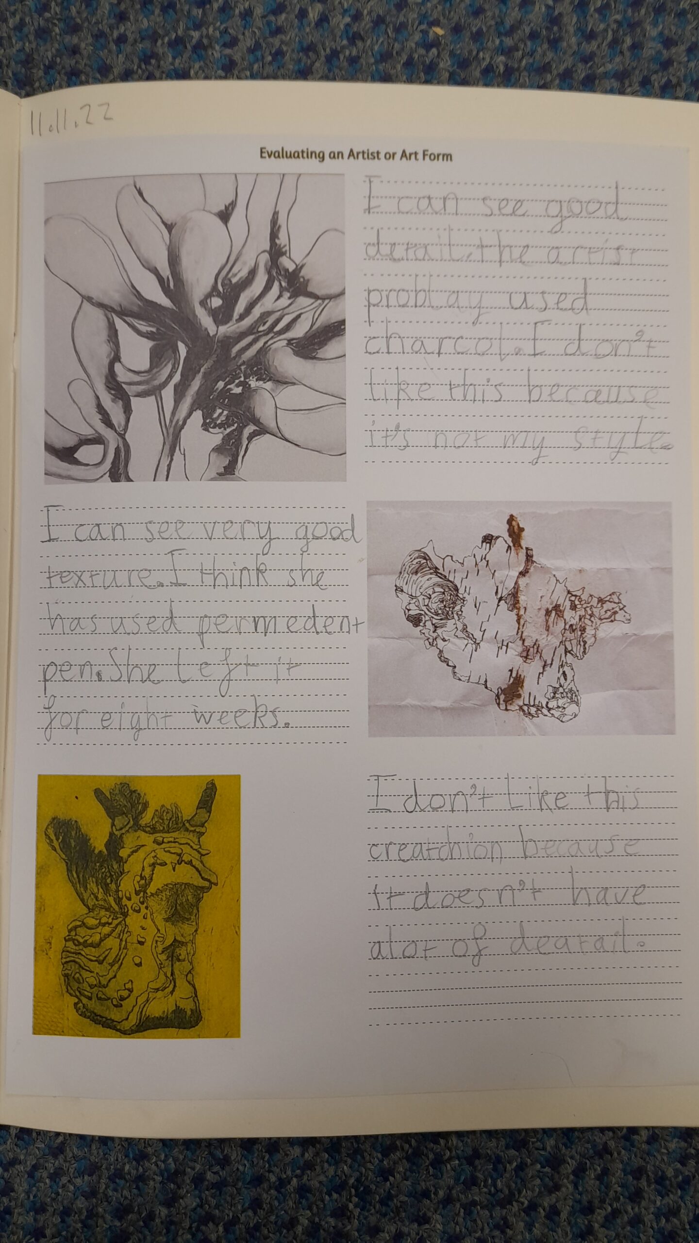 I had a residency at Elloughton Primary School this month – going in and teaching Year 3 and 4s drawing techniques to build their confidence in drawing. It was so good – they first spent time critiquing my work and then learning drawing techniques, to then develop their own artwork in the ‘style of’ later on. I had SO MUCH FUN and it really brightened me. Again, it was an experience that helped me remember what it is I need to be happy – I need to be creative and arty and deliver arty things to and with people.