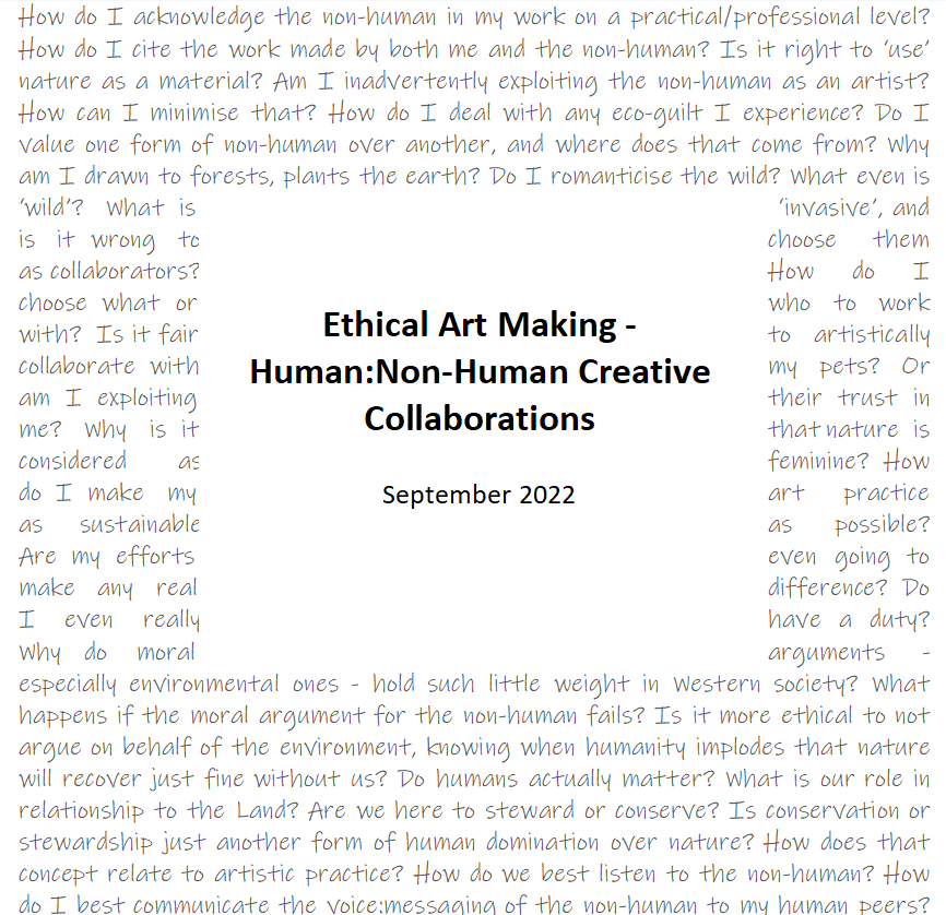 Started the month by submitting Module 3 in my MA – which was another writing-y one. I wrote a journal article on ‘Ethical Art-Making – Human: Non-Human Creative Collaborations‘ (85% for the paper, 85% for the presentation, 80% for the podcast ‘viva’) – which although I loved researching, was challenging to get into an article under the given word-count! Massive relief when it was handed in, that’s for sure. I was looking forward to getting back to making – I did a lovely workshop at the Makerspace though, messing about with leaves, and made some charcoal and some other daft things at HARI.