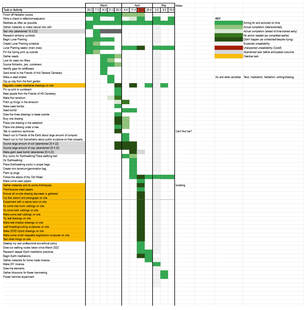 My entire practice sits within these definitions – connecting to and expressing the Earth in a multi-disciplinary way. The ethical weight I place on my practice situates it quite firmly as an expression of ‘Dark Green Spirituality’. In practice, this involves: Making:drawing, walking, gardening, direct action (e.g. seed bombing), sharing practice, meditating, free-writing:drawing, tarot, herbalism, human:non-human creative collaborations, professionally and personally connecting with related and supportive organisations (e.g. Friends of the Earth Hull, Hull General Cemetery, Scottish Centre for Geopoetics, One Hull of a Forest, Hull Trees, Hull Samaritans, The Critical Fish).