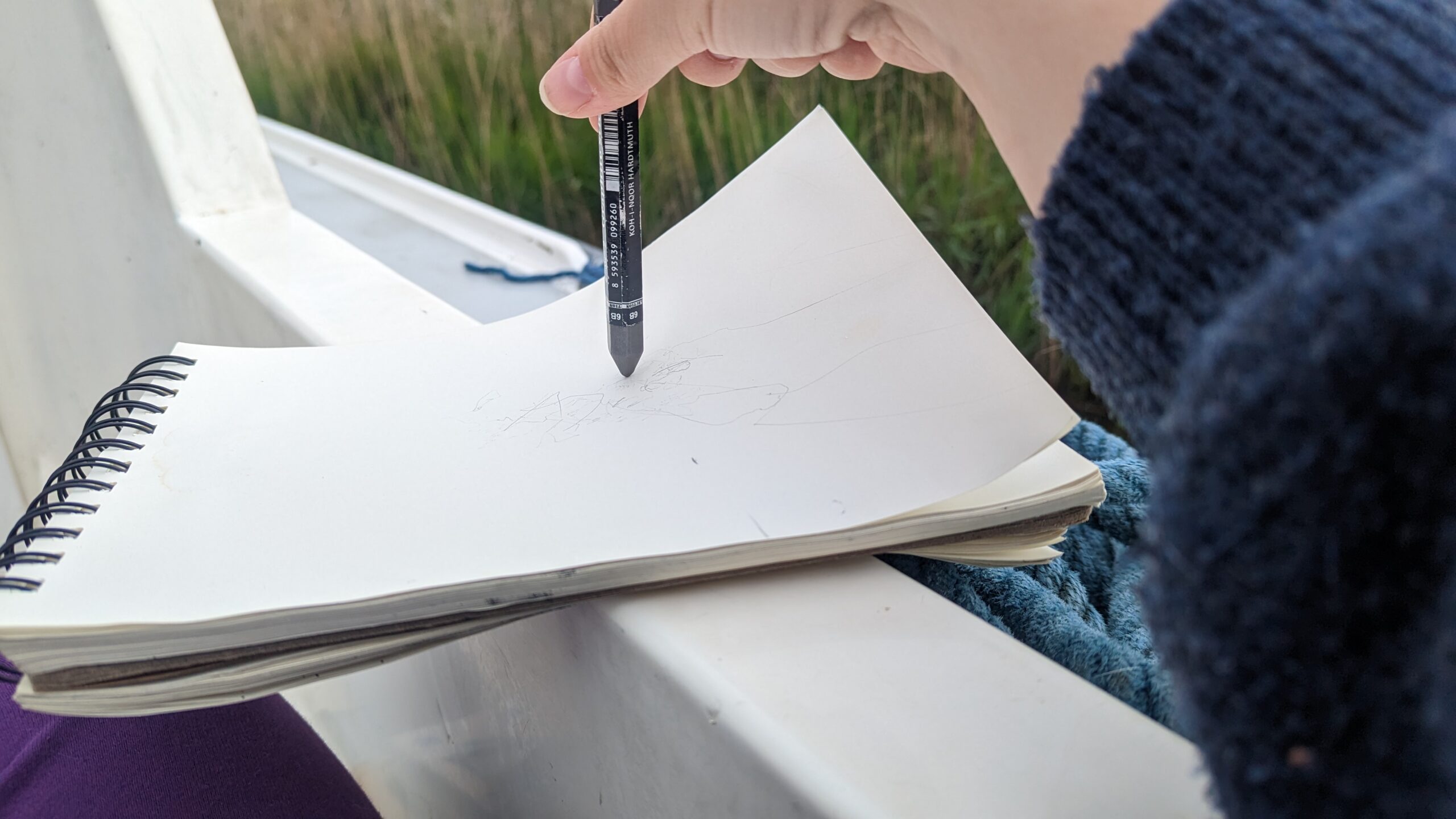 | Magrane (2015) believes that a site can be enriched and possibly recalibrated as a result of mindful immersion and subsequent geopoetic expression. | Walking, making:drawing on site, using materials found on site, experiencing and ‘being’ in nature, all three community projects, work made during sailing in Norfolk |