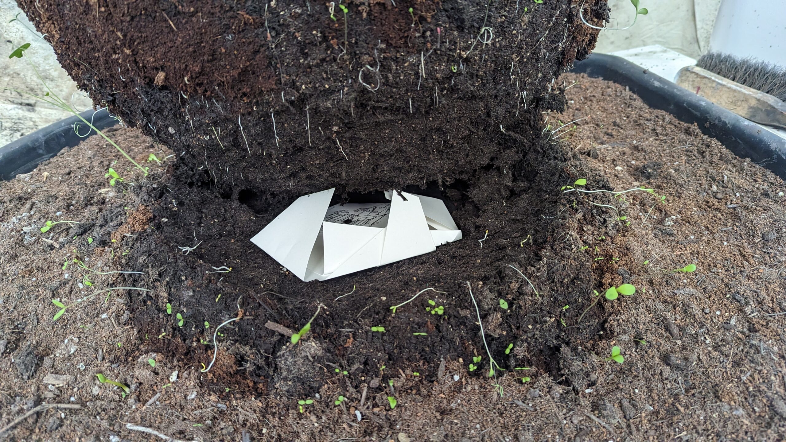 The only exception has been winding cotton around the seed ball for structural integrity, or using twine to help stablise the Where the Beings Are Den… yet these were the most light touch solutions possible and are only a temporary. Embracing the extent that the storm impacted my Bergonia Storm work! Again, this is another exercise in ethical intentionality BEHIND making work instead of WHAT the work is itself. |