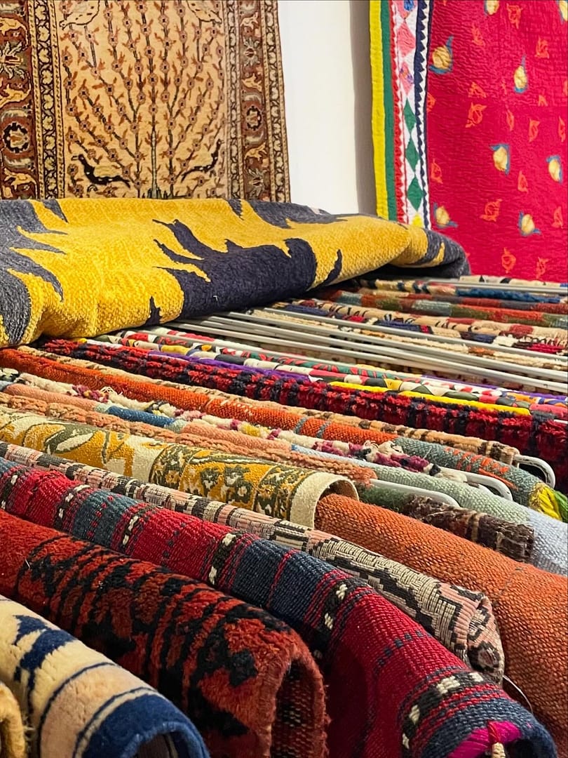 Interwoven takes place within a small rug shop; a place where colour, craftsmanship, and conversation naturally converge. The shop has an earthy, grounded warmth… woven textures, soft light, and the quiet scent of natural fibres and incense create a space that feels both rooted and welcoming. Surrounded by this calm, I spend quiet hours drawing and painting amongst the gentle rhythm of shopkeeping. This self-directed residency is as much about presence and patience as it is about art – a meditation on time, labour, reconnection, and the quiet conditions that allow creativity to take root.