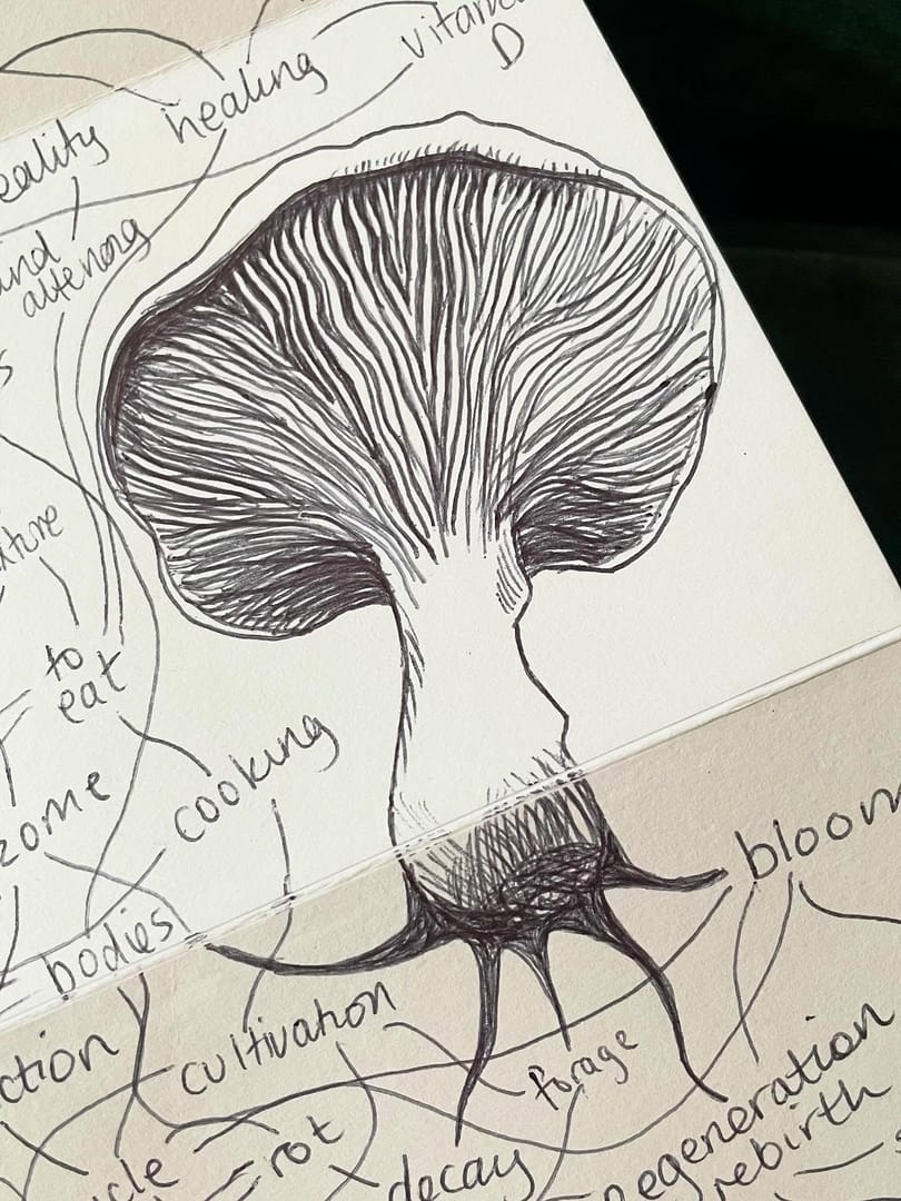 Together with Feminist Lecturer and Mycologist Dr Elspeth Mitchell, I led a small group of queer participants aged 18-25 to know fungi as living beings with their own roles, needs, and ways of relating to the world. Our co-created programme of activity – taking place across Spring/Summer 2026, includes activities such as mushroom foraging walks, creative making workshops, cultivation sessions and group conversations. Here we create a space for a dialogue between human understandings and fungal worlds – a chance to learn with fungi rather than from them.