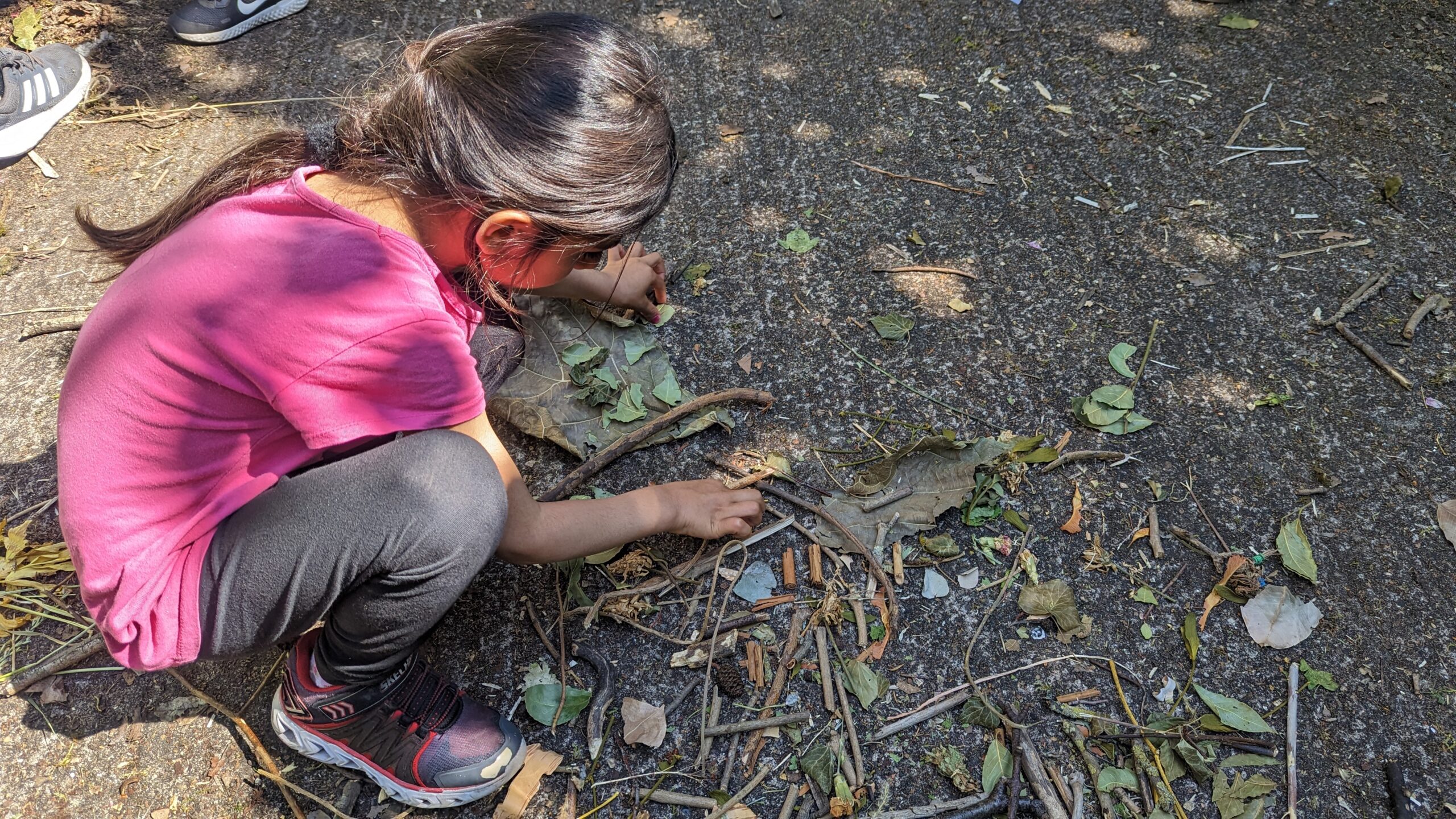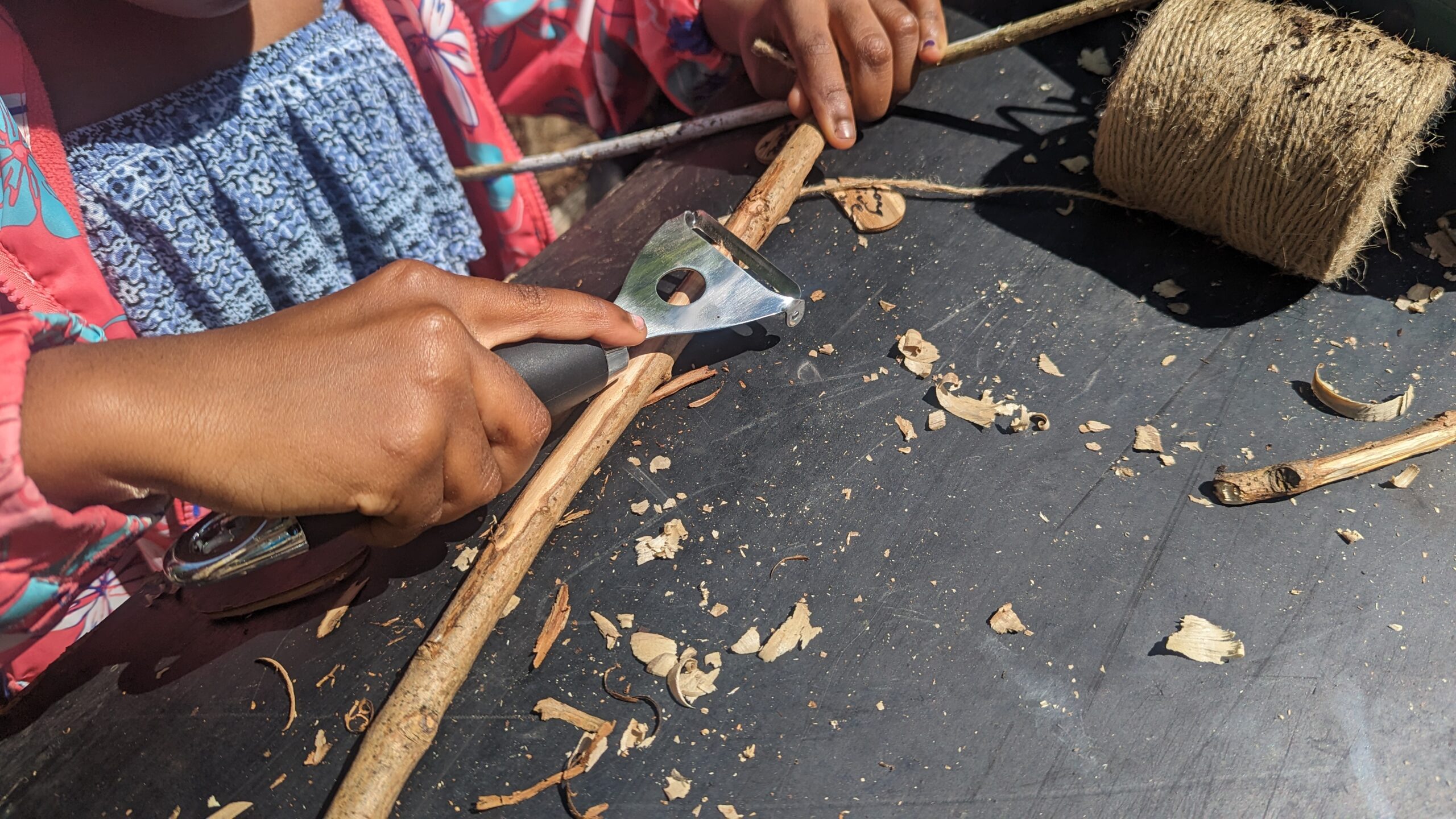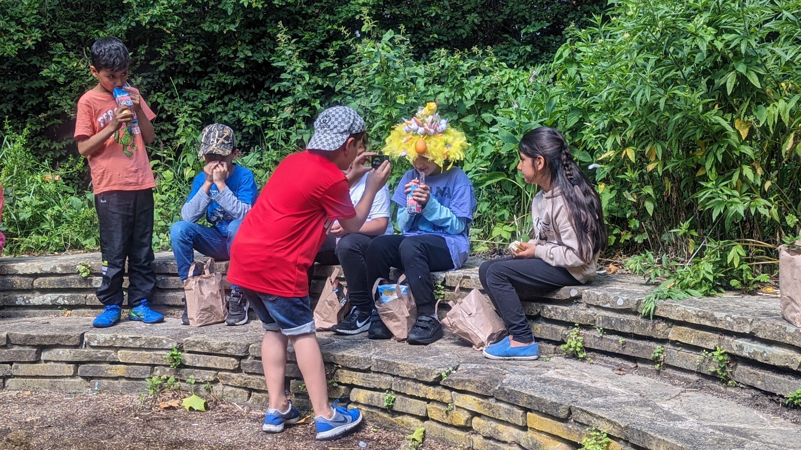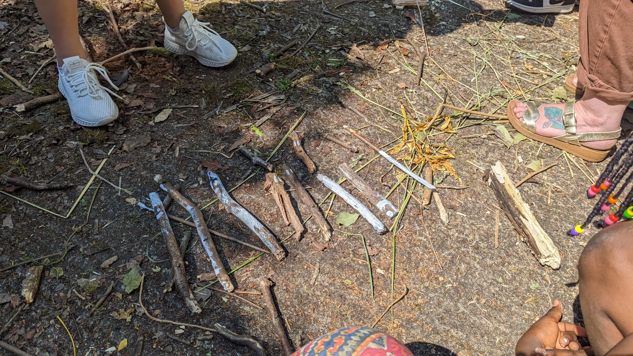 The children from the school were invited to explore and make in response to the ‘Beings’ living in the den (which was now rich with growth) over six sessions in June 2023.